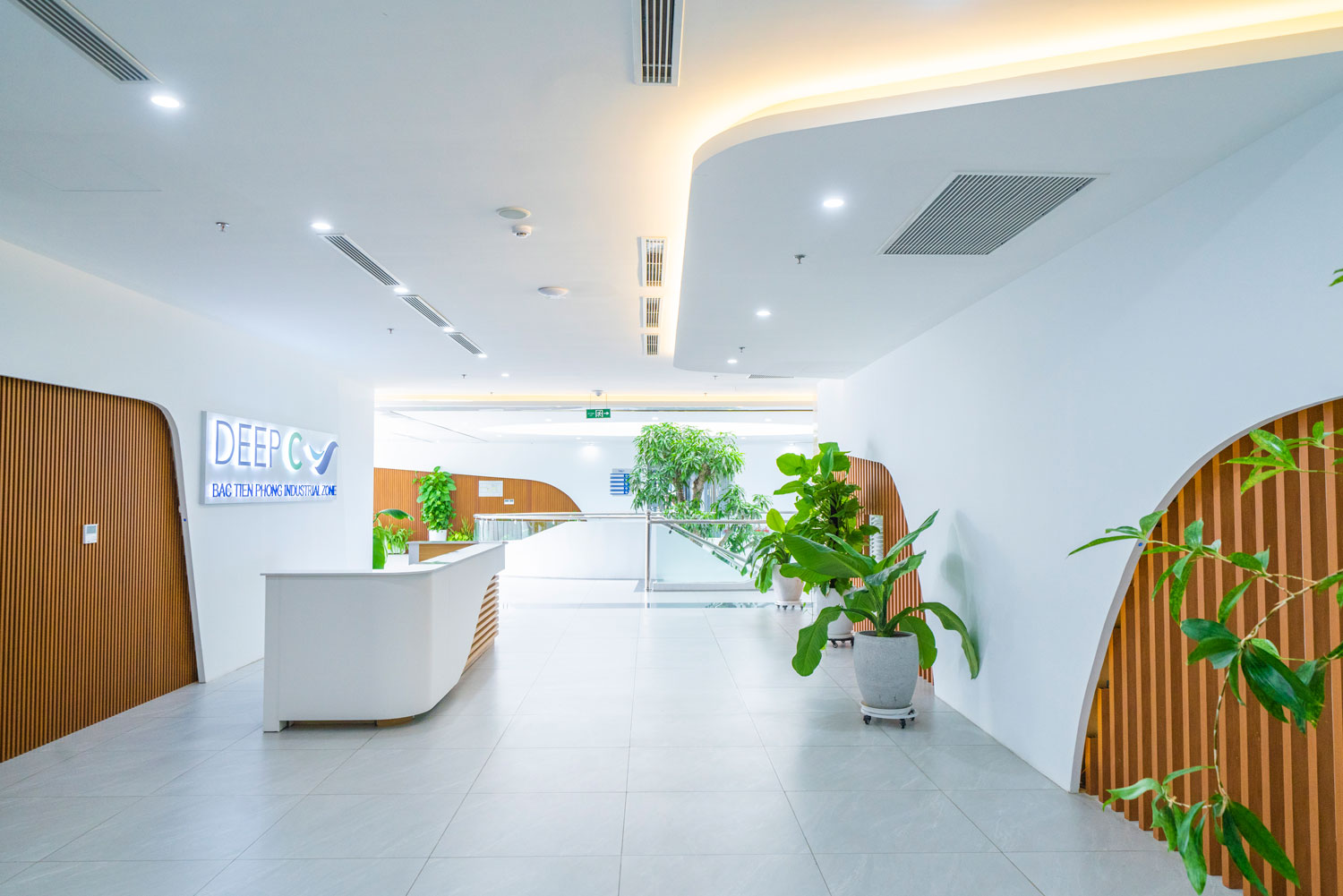 The Service Complex in DEEP C Quang Ninh 2 Industrial Park features a distinctive architectural design inspired by the shape of a ship, an iconic landmark within the park. It serves as a premium, multifunctional commercial building, offering green workspace and service-ready facilities for businesses serving clients, partners, and thousands of employees working in the DEEP C Quang Ninh cluster.